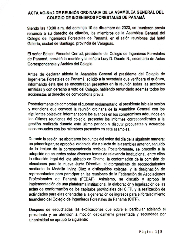 El Colegio de Ingenieros Forestales de Panamá (CIFP) celebró el pasado 23 de noviembre la toma de posesión de la nueva Junta Directiva, la cual estará al frente de este gremio durante el período 2024-2026. En un acto solemne, se destacó el compromiso de los nuevos directivos para continuar con el fortalecimiento del sector forestal en el país, promoviendo la sostenibilidad, la investigación y el desarrollo de políticas públicas que favorezcan el manejo adecuado de los recursos forestales.